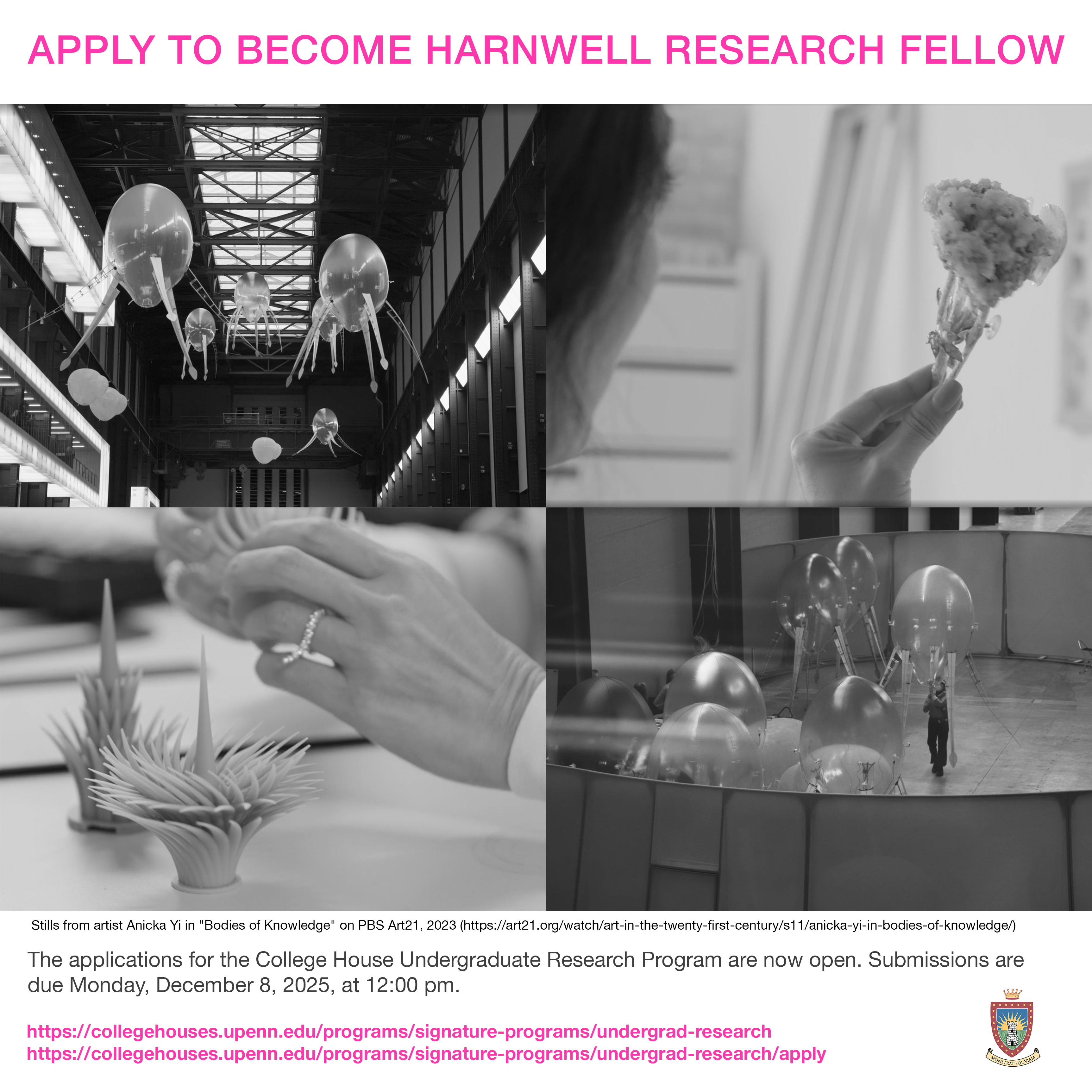 Join Harnwell Faculty Fellows Dr. Adriana Perez (adrianag@nursing.upenn.edu) and Ivanco Talevski (ivancot@upenn.edu) at the information session regarding applying for the College House Research Fellow Program, on Friday, November 14th 10:30am-11:30am at Harnwell M-10.